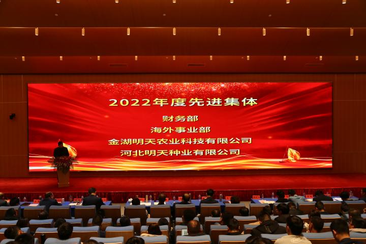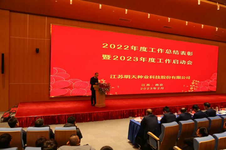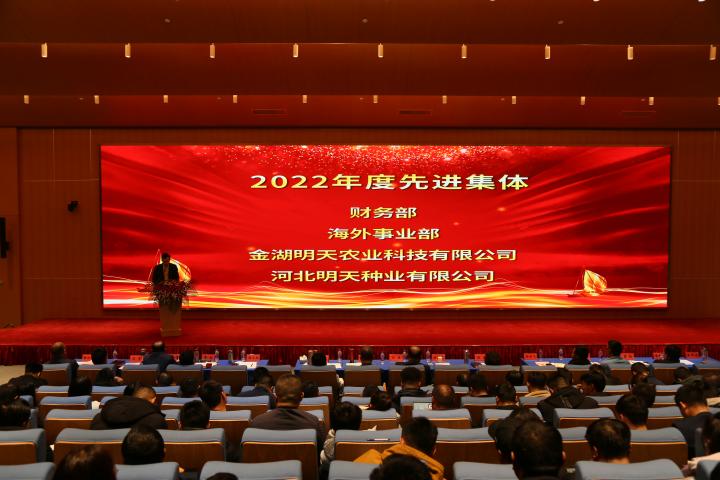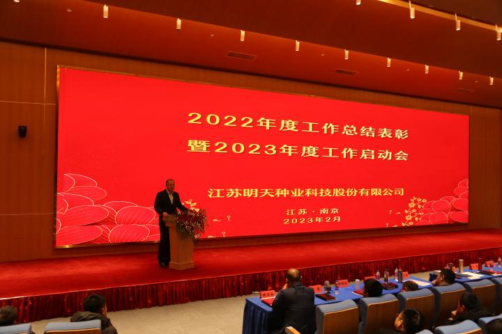 嚴總在工作報告中指出2022年是明天種業(yè)不平凡的一年,在面對新冠疫情、市場競爭日趨激烈的嚴峻形勢,公司領導班子同心同德、精心組織;各級管理人員積極響應、主動作為;一線員工愛崗敬業(yè)、工作勤奮;全體員工齊努力,共克難,經(jīng)受住了考驗。公司各項事業(yè)穩(wěn)步推進,成果豐碩。2022年銷售和利潤取得新的雙突破,實現(xiàn)四連增;公司被農(nóng)業(yè)農(nóng)村部列入“國家種業(yè)陣型企業(yè)”和再次被認定為“中國種業(yè)信用骨干企業(yè)”,綜合排名第11位;“制種大縣+龍頭企業(yè)”項目順利實施,金湖產(chǎn)業(yè)園建設基本完成。2023年是公司第一個五年規(guī)劃實施的關鍵第四年,全面完成全年的工作目標任務對明天種業(yè)未來的發(fā)展意義深遠。公司將全面貫徹落實黨的二十大精神,全面落實“以國內(nèi)市場為主體,創(chuàng)新升級實現(xiàn)跨越,以國外市場為突破,積聚資源,注重實效”的戰(zhàn)略部署,以“搶抓種業(yè)振興機遇,拼出更加美好明天”為行動綱領,超前謀劃、統(tǒng)籌管理、積極落實,確保2023年經(jīng)營目標任務的實現(xiàn)。