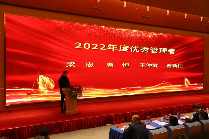 大會第二項議程由公司副總經(jīng)理王波宣讀關于2022年度先進表彰的決定,由師洪飛、徐江等公司領導宣讀先進集體、杰出管理者、優(yōu)秀管理者、先進個人先進事跡。